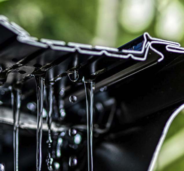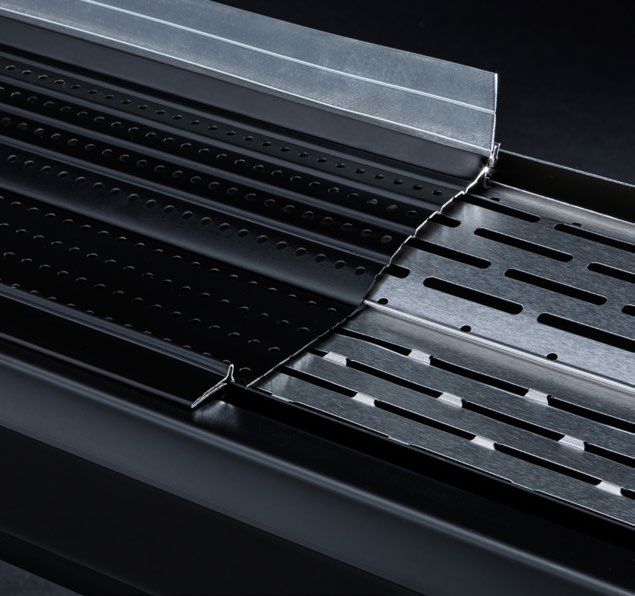 The secret to clog free gutters and maximum drainage: Two layers of perforated aluminium.